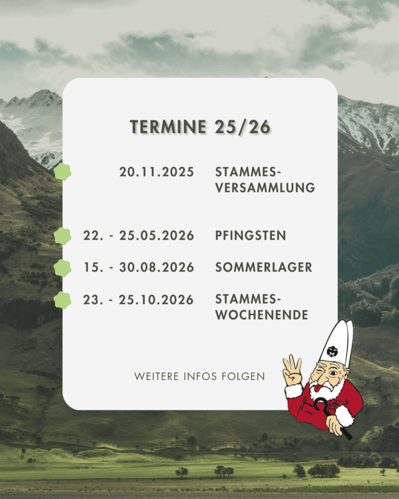 Für das Sommerlager im Juli ging es für unseren Stamm wie für Einige schon zum Jahresbeginn nach Kandersteg in die Schweiz. Im Rahmen des 100-jährigen Jubiläums des Kandersteg International Scout Centre bot sich uns hier ein buntes Rahmenprogramm, bei dem wir u.a. bei großen Campfire-Abenden oder anderen Aktivitäten mit Pfadfinder*innen aus aller Welt in Kontakt kamen. Darüber hinaus erkundeten unsere Stufen die Umgebung rund um Kandersteg und in den Schweizer Bergen bei mehrtägigen Hikes. Wie auch im letzten Jahr fand unsere diesjährige Stammesversammlung im Sommerlager statt.